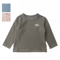 風合いのよいオーガニックコットンを使用した、パイル地の長袖Tシャツ。脱ぎ着がしやすいよう、左肩はドットボタンで開く仕様です。短いパイル地を採用しており、通常のループの長いパイル地に比べて引っ掛かりにくくなっています。