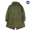 "M-51パーカーは第二次大戦から発展してきたプルオーバー型のM-48パーカーを進化させたもので、朝鮮動乱の寒冷地において主に米陸軍章将兵に支給された。この戦地は米軍がかつて経験した事の無い寒冷地であることから、通常の装備の上から着用するレイヤー(重ね着)システムが採用された。最初期型(1951年)のシェルは厚手のコットンサテン地であったが、1952年以降のモデルでは、コストの見直しや軽量化を図って、コットンナイロンのオックスフォード地に変更されている。袖口は、密封性を高めるためのラバーストラップアジャスターベルトが内蔵され、ポケットの袋地には保温性のあるウール素材が使用されている。"(バズリクソンズ公式サイトより)