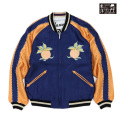 リバーシブル面は、龍虎が睨み合う「和」の絵柄。ハワイのPX(基地内の売店)で売られていたスカジャンだが、日本から輸出されていたため、背中にHAWAIIの文字がありながら絵柄はオリエンタルという和洋折衷な組み合わせとなっている。ボディはシルバー×グリーンの「逆配色」で、明るい色がメインカラーとなった南国ハワイを想わせる爽やかな仕上がり。"(テーラー東洋公式サイトより)