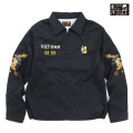 テーラー東洋のベトナムジャケット、通称ベトジャン。戦後の日本で誕生したスカジャン同様、1960年代から1970年代のベトナム戦争時に生まれたスーベニアジャケット。表地にコットン生地を使用したタイプで、マットな太めの色糸で絵柄が刺繍されている。"1960年代後期(1968~69年)にベトナムへ駐留していた米兵がオーダーし、アメリカへ持ち帰った一着。マップ柄が主流のベトジャンにおいて、このドラゴンの刺繍は非常に希少である。龍柄のヴィンテージはいくつか確認されているが、これほどカラフルで迫力のある刺繍は他に類を見ない。背中の龍も袖の龍も多色の色糸を駆使して描写されており、当時も高い技術を持つ職人が手掛けていたことが窺える。左胸の「福」の文字は通常よりもやや小さいが、2色の色糸を使いヴィンテージに準じたバランスで再現している。"(テーラー東洋公式サイトより)